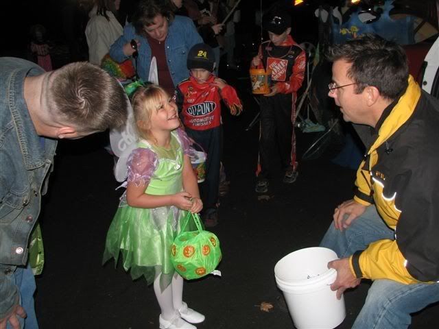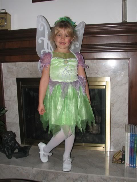 ok, things I left out... On the way home on Tuesday, in the market there was a lady selling hair thingies (they're like fairy crowns or whatever) so I found a green one that matched her costume that had TINKERBELLS attached to it (look real close, they're there!) Mikayla was the cutest thing I ever saw, and you don't have to take my word for it, just look. ;)