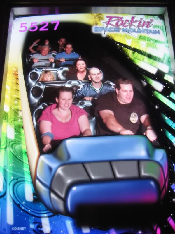 Probably enough said but anyway. Mikayla LOVES roller coasters (usually) so she was all jazzed up about Space Mountain and so were the rest of us! Well, we got on and she still seemed ok but about 20 seconds into it I felt her grab my hand and then put her head on my arm. When we got off she had the BIGGEST alligator tears streaming down her cute little face. She was not impressed at all. We decided no more crazy rides for her!
