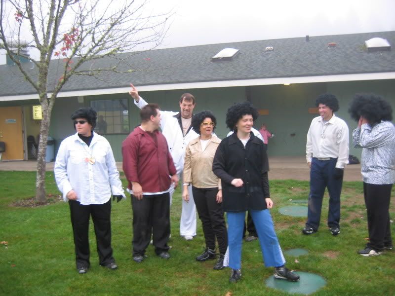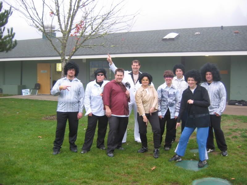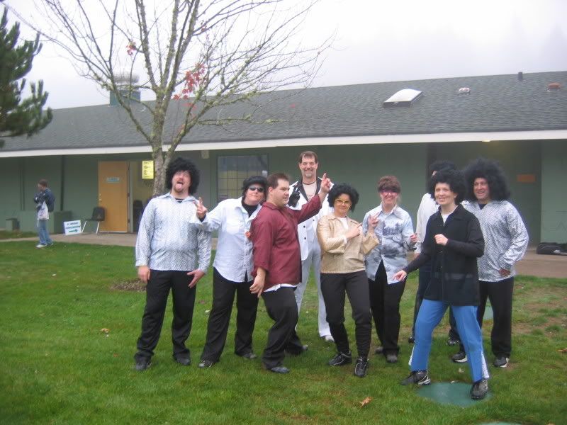 This Saturday Keith (and a BUNCH of our buddies) was in a halloween costume softball tournament! SO fun! There were teams as pirates, doctors, the wizard of oz, santa's helpers (and santa), cross dressers, etc. Very fun and very cute! So here's the pictures of his team! Hope you like them! I spent a while on Keiths hairy chest shirt so please notice it or I'll cry. ;)