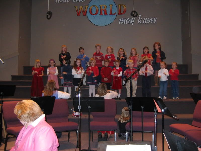 The Kindergarten and 1st graders sang at church Sunday morning, it was very exciting! Mikayla loves to be the diva and talked about this for weeks before hand! Any time to get in front of church and sing is a BIG deal! This morning they sang "this land is your land" and "my county tis of thee" to honor our veterans. It was so cute, then the church orchestra and choir did a WONDERFUL presentation called "we remember" and as they sang they showed pictures of all the friends and family of folks at our church who are serving in the armed forces. It made me stinkin' cry! anyway, to the three of you that I know who are out there busting your butts to keep our liberties, THANK YOU! Donnie Wood, Nathan Lewis, and Nathan Zerfoss, stay safe and either hurry home safe or for the other two, get up here and make a visit! we miss you! Oh, by the way Nathan (Lewis) you need to send your mom a new picture of you in uniform, she even asked me to ask you. so for christmas, find someone and go get dressed up and get a picture taken you brat. ;) Happy Veterans Day!