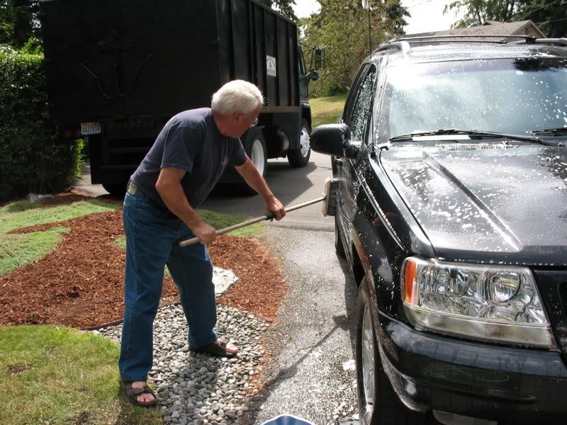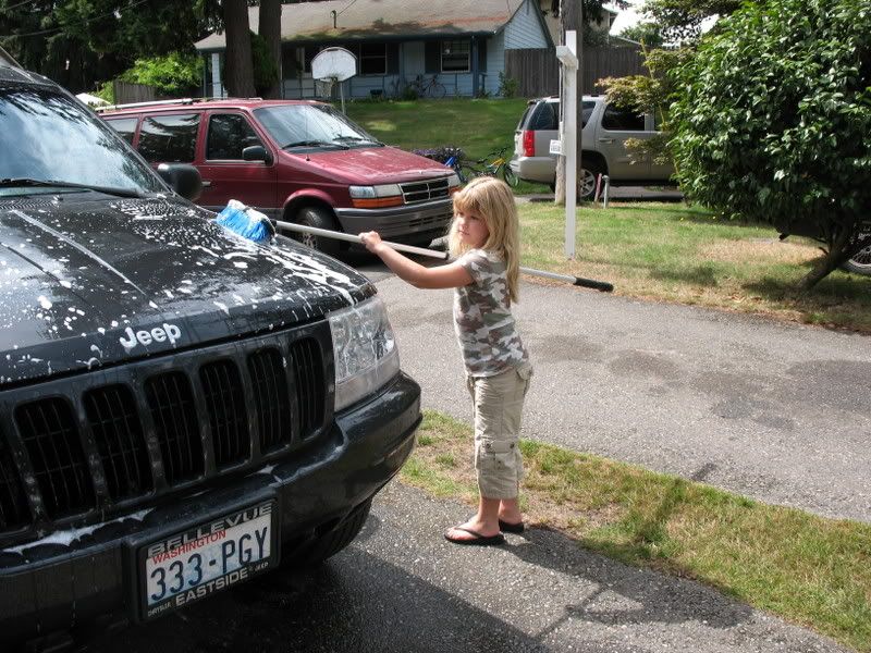 My dad is teaching her the fine art of car washing. I greatly appreciate that! practice on my car anytime! Niki and I grew up washing the cars with dad so we understand this is a good time! Mikayla working it with the BIG brush!