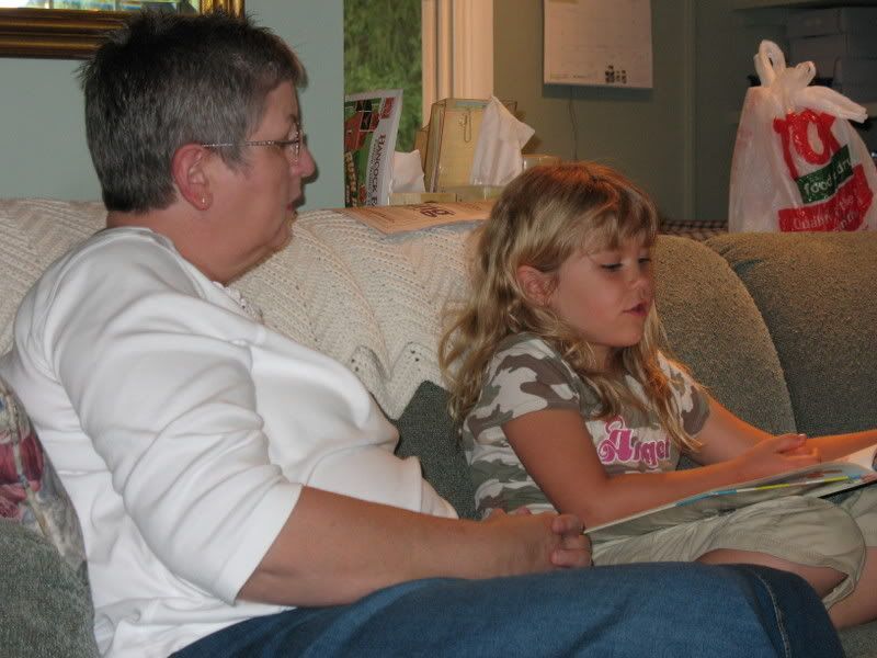 My mom reading with Mikayla. they are working on MEANINGS of the words, not just how to say them, she has that part down pat, now we just have to get her to know what they mean!