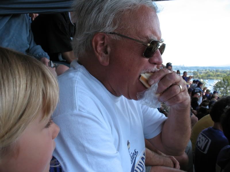 Some of you know that my dad and I have bonding time. It's called the Husky football season. During husky season we have daughter dad date day, which is to mean... We dork out and go to the Husky game. We usually go to 2-3 games during the season (this year I'm hoping for MORE!) together (he goes to ALL home games barring some major family responsibility). We have our system, we take the rooter bus down to the game, dad works a deal to get us in the game (usually buying and selling sets of two until he has the best seats for the least money) We make it in just in time to hear... Hello Dawg Fans, from the announcer and we eat hot dogs, enjoy the game and Dad lets me use the binoculars to watch the cheerleaders.