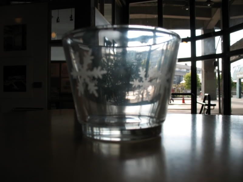 I took 2 snowflake punches and punched out snowflakes out of avery labels (full sheet) and then cut each of those out (220 x 4 snowflakes per votive = 880 individual punches) to the point of blisters! I then through trial and error realized that the labels need to be affixed VERY solidly to the votives, I went as far as taking out the bone folder and making sure that the label was on the glass with no gaps.